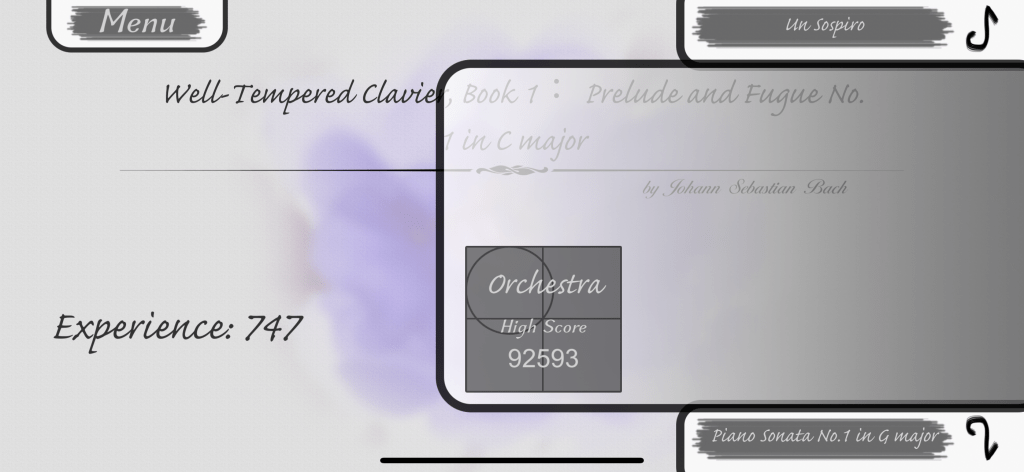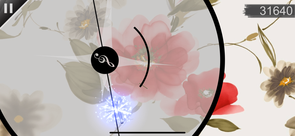 The game’s visual design centers around a minimalist UI with beautiful background image and effects, reflecting its classical music theme. Vibrant colors are sparingly used as positive feedback for perfect or good hits, adding contrast and reinforcing player success.