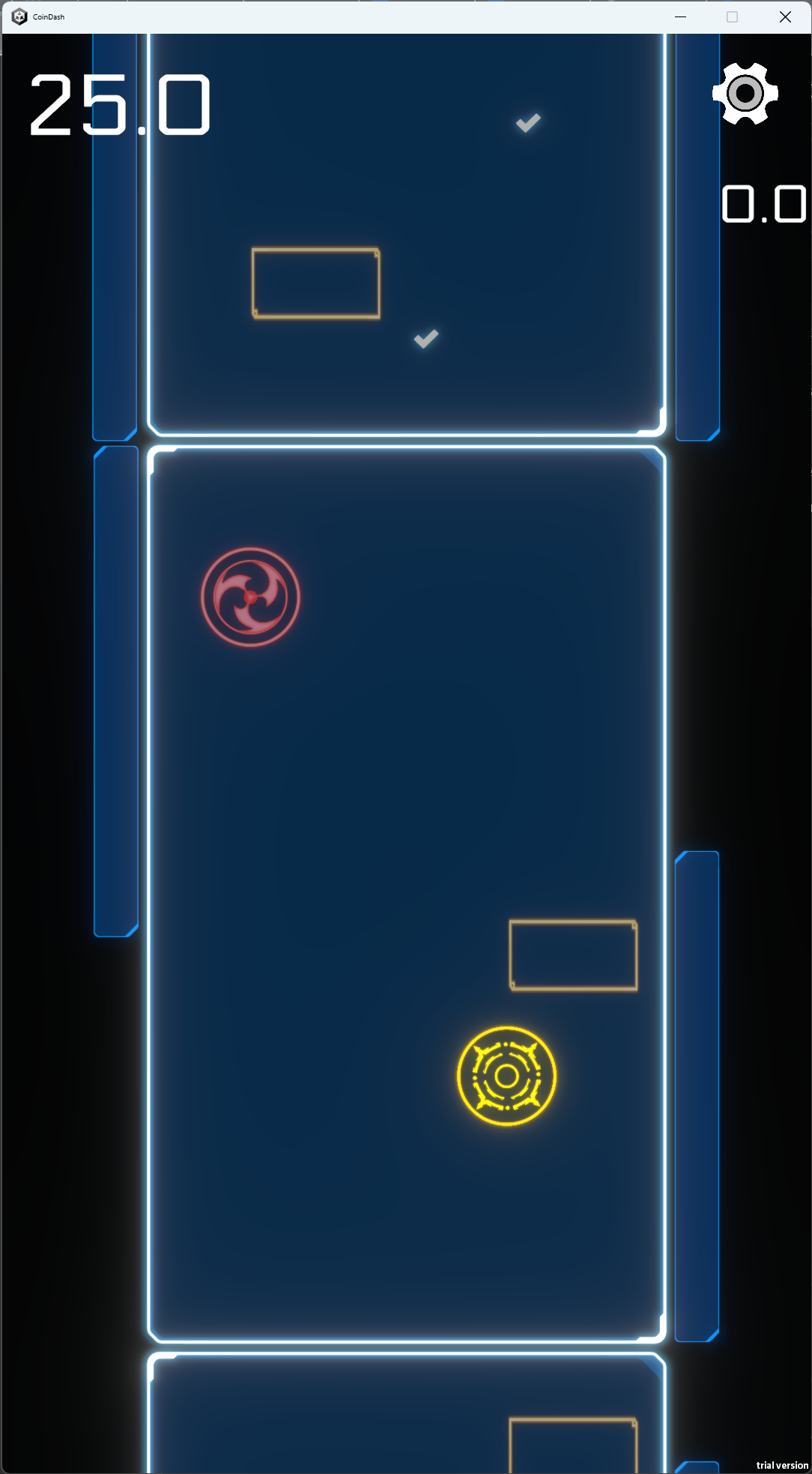 The goal of Coin Dash is to provide an experience that combines the unpredictability of a coin pusher with the skill-based mechanics of a strategy game. Players must shoot their coin forward, consuming energy with every move, while recovering it through smashing objects or collecting power-ups. Randomly spawned coins along the path allow players to possess them, gaining new abilities to survive longer and score higher. The game auto-saves after each shot, ensuring smooth progression.